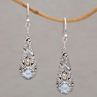 Gold Accent Blue Topaz Butterfly Earrings from Bali 'Monarch Drops' Item ID: 2669887192