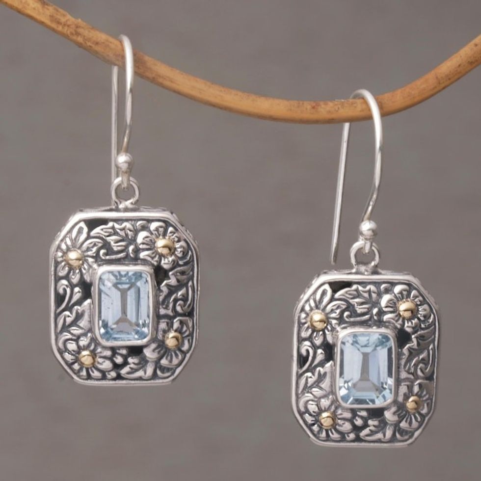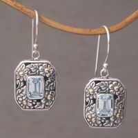 Gold Accent Floral Blue Topaz Dangle Earrings from Bali 'Daisy Queen' Item ID: 2669887445