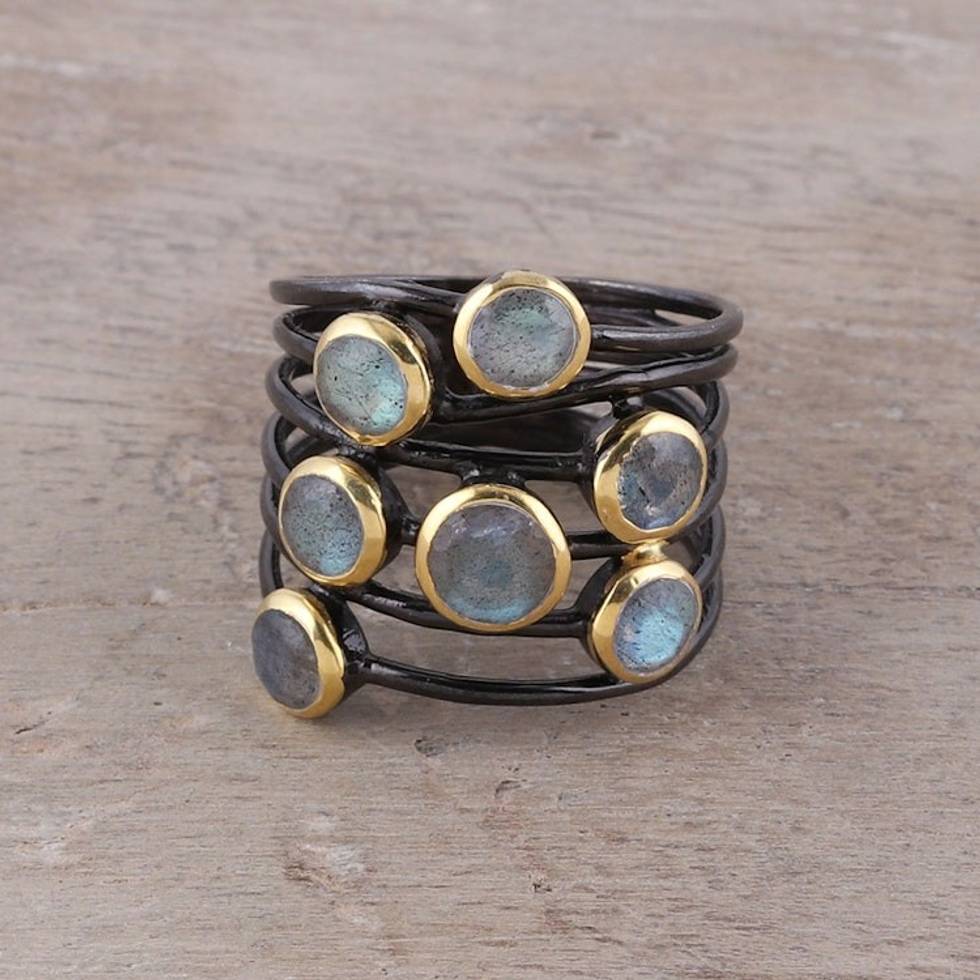 Gold Accent Labradorite Multi-Stone Cocktail Ring from India 'Dewy Morn' Item ID: 2669941849