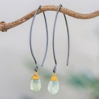 Gold Accent Prehnite Dangle Earrings from Thailand 'Midnight Meadow' Item ID: 2671798616