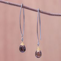 Gold Accent Smoky Quartz Dangle Earrings from Thailand 'Midnight Meadow' Item ID: 2671798462