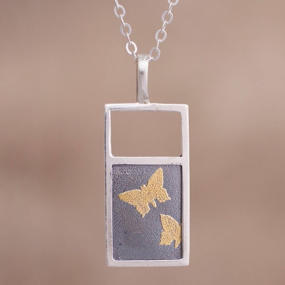 Gold Accent Sterling Silver Butterfly Necklace from Peru 'Golden Butterflies' Item ID: 2669919666