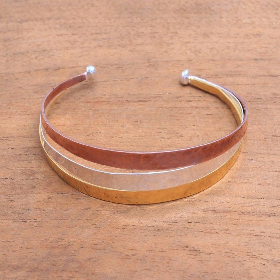Gold Accent Sterling Silver Cuff Bracelet from Bali 'Metallic Rainbow' Item ID: 2671821779