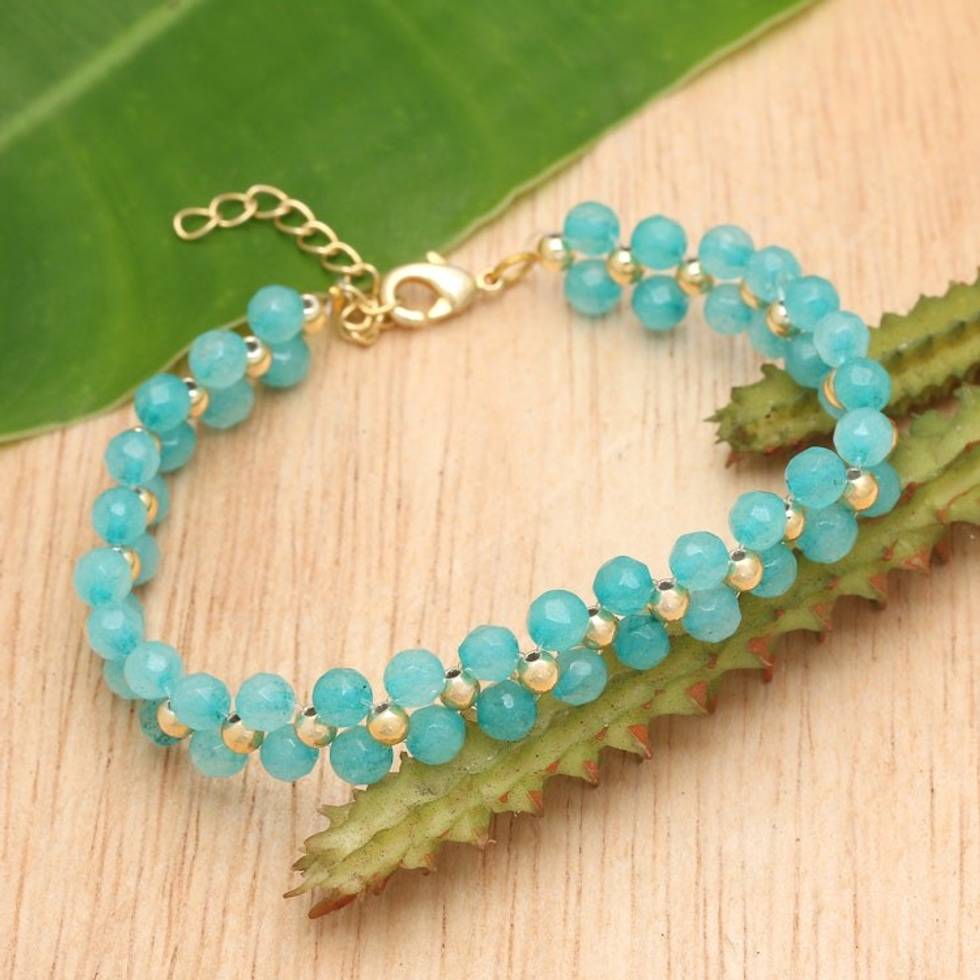 Gold-Accented Adjustable Amazonite Beaded Wristband Bracelet 'Sea Splendor' Item ID: 2671669828
