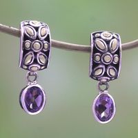 Gold Accented Amethyst Dangle Earrings from Bali 'Padi Glisten' Item ID: 2671736744