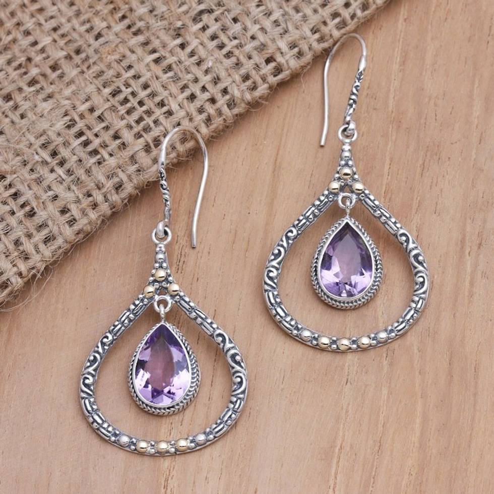 Gold-Accented Amethyst Dangle Earrings 'My Heaven' Item ID: 2671747655