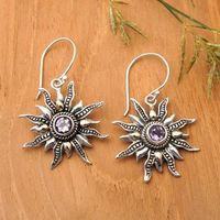 Gold-Accented Amethyst Silver Dangle Earrings with Sun Theme 'Purple Sunlight' Item ID: 2676660603