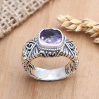 Gold-Accented Amethyst Single Stone Ring 'Magic Jungle' Item ID: 2671748566