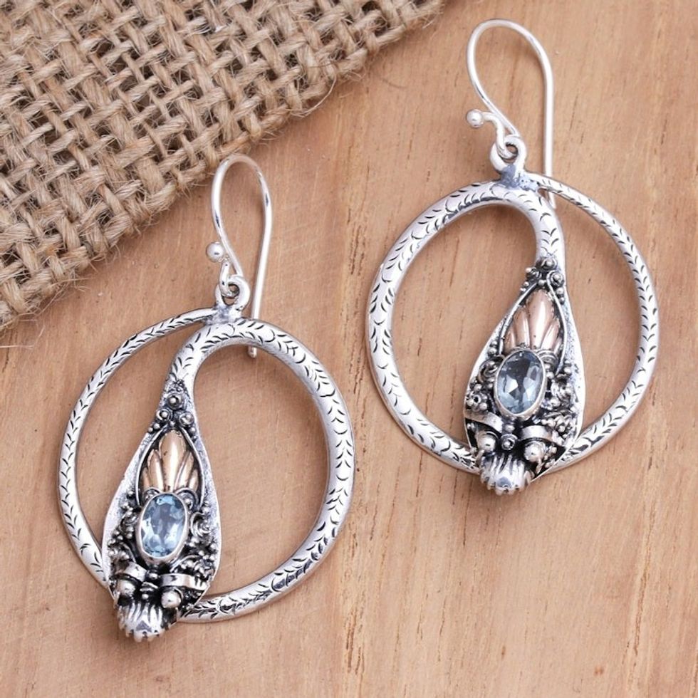 Gold-Accented and Blue Topaz Snake Dangle Earrings 'Snake Circle' Item ID: 2671747072