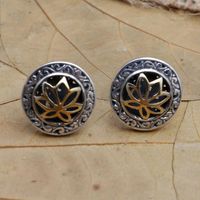 Gold-Accented and Sterling Silver Button Earrings 'No Longer Alone' Item ID: 2671745425
