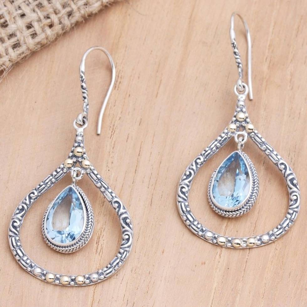 Gold-Accented Blue Topaz Dangle Earrings 'Clear Eyes in Sky' Item ID: 2671747351