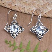 Gold-Accented Blue Topaz Dangle Earrings from Bali 'Palace Flowers' Item ID: 2671668770