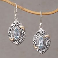 Gold-accented Blue Topaz Swirl Motif Dangle Earrings 'Defiant Beauty' Item ID: 2669887208