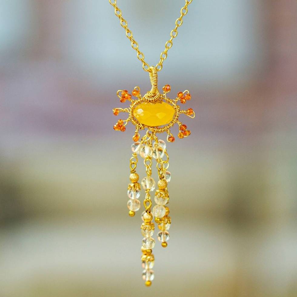 Gold-Accented Citrine and Cubic Zirconia Pendant Necklace 'Absolute Joy' Item ID: 2671807591
