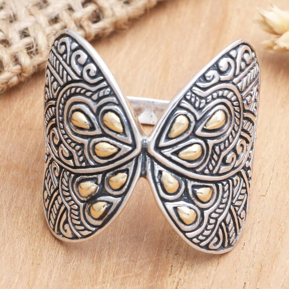 Gold-Accented Cocktail Ring with Butterfly Motif 'Give Me Butterflies' Item ID: 2669920819