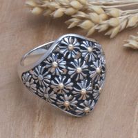 Gold-Accented Cocktail Ring with Floral Motif 'Golden Flower Bed' Item ID: 2671748652
