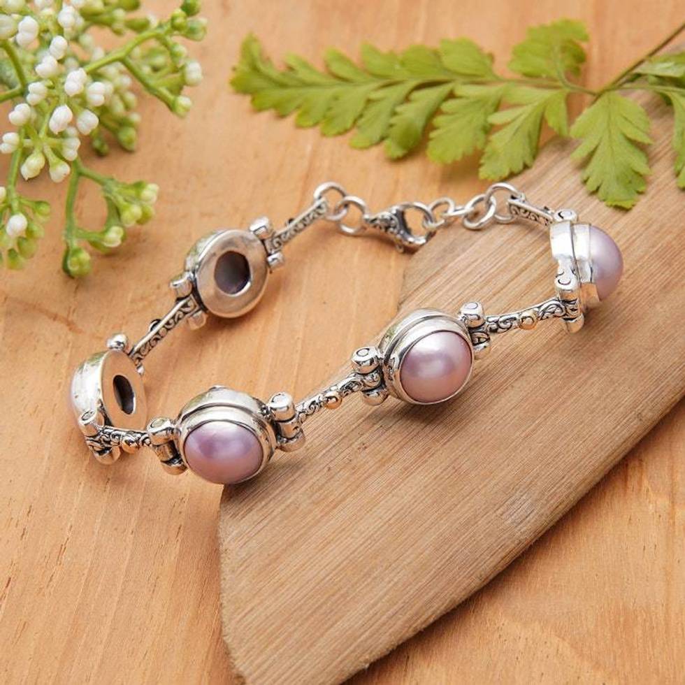 Gold-Accented Cultured Mabe Pearl Silver Station Bracelet 'Chic Pink' Item ID: 2676657170