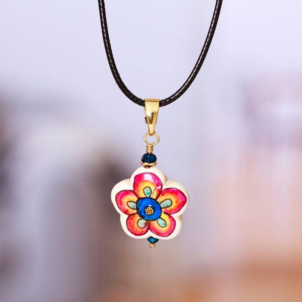 Gold-Accented Floral Howlite Pendant Necklace in Vibrant Hue 'Diversity Bloom' Item ID: 2671639209