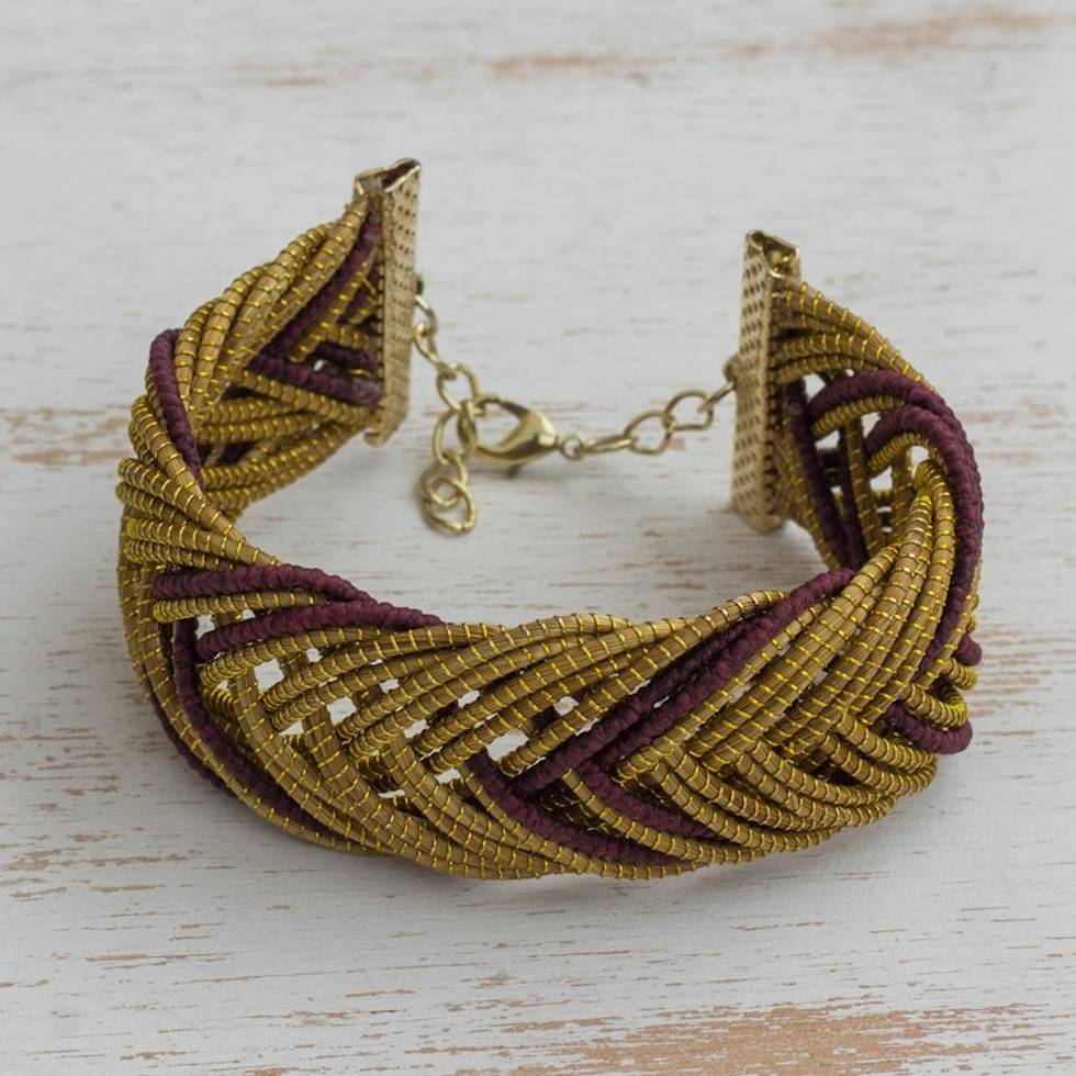 Gold Accented Golden Grass Wristband Bracelet in Burgundy 'Gold and Burgundy' Item ID: 2669887428