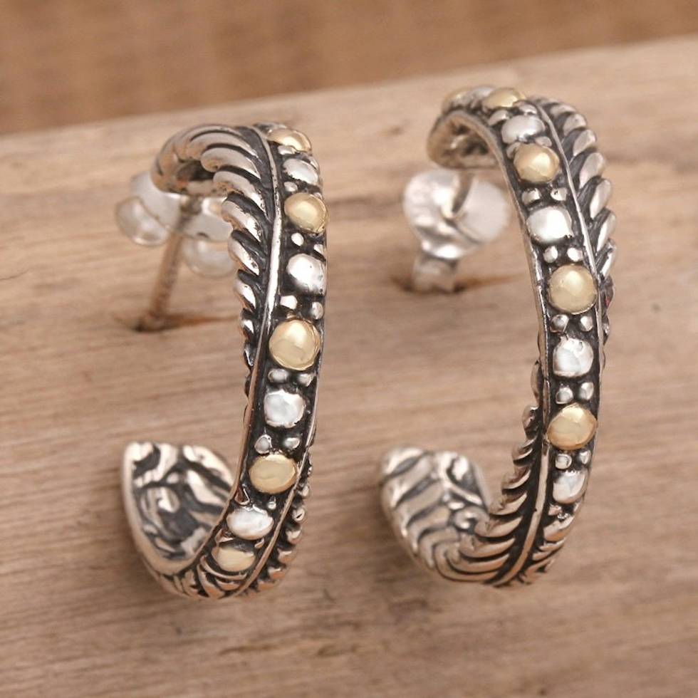 Gold-Accented Half-Hoop Earrings from Bali 'Flashing Lights' Item ID: 2671747477