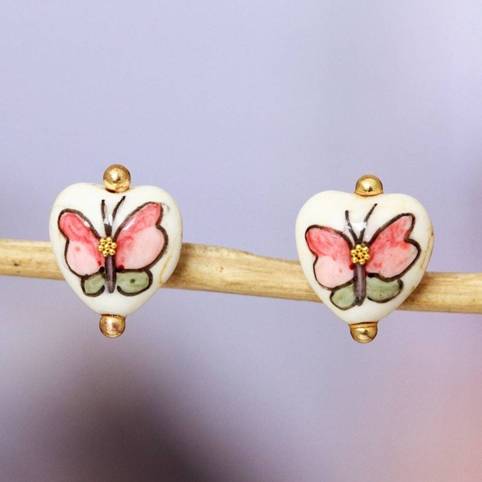 Gold-Accented Heart-Shaped Butterfly Howlite Stud Earrings 'Dulcet Hope' Item ID: 2669931092
