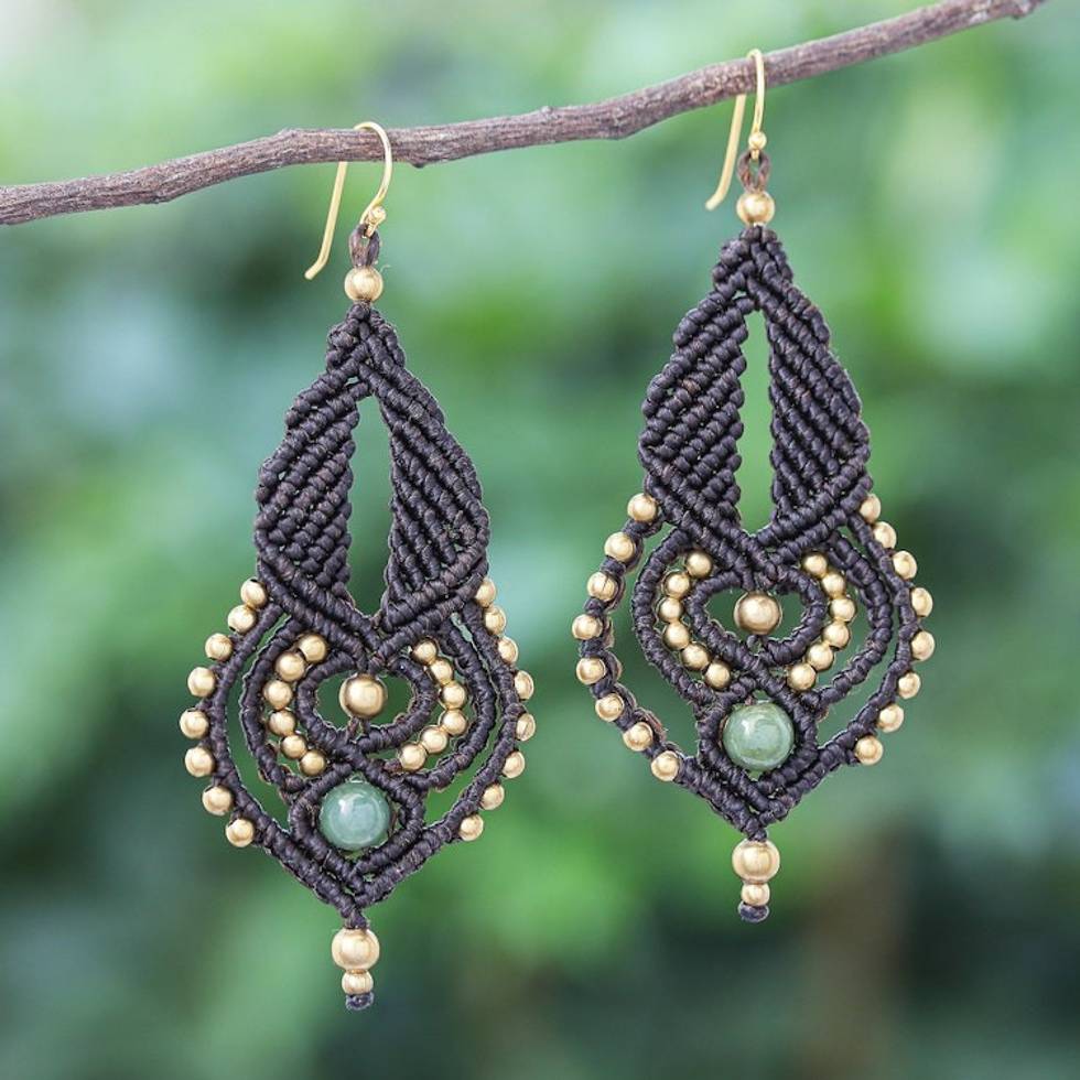 Gold-Accented Jade Macrame Earrings 'Heaven Can Wait' Item ID: 2671640901