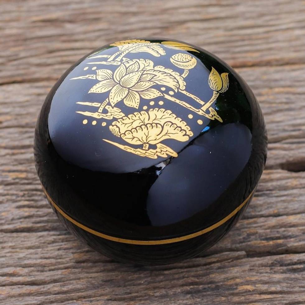 Gold-Accented Lacquerware Box with Lotus Motif 'Lotus Pond' Item ID: 2671799884