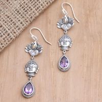 Gold-Accented Lotus-Motif Dangle Earrings 'Dear Lotus' Item ID: 2671746742