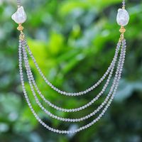"Accented with gold details, Arshad Ullah's pretty pendant necklace is a luxury lover's dream come true. Thai artisans use smokey quartz gems to create the tiered pendant, embellishing the necklace with cultured freshwater pearls and 18k gold-plated brass accents."
