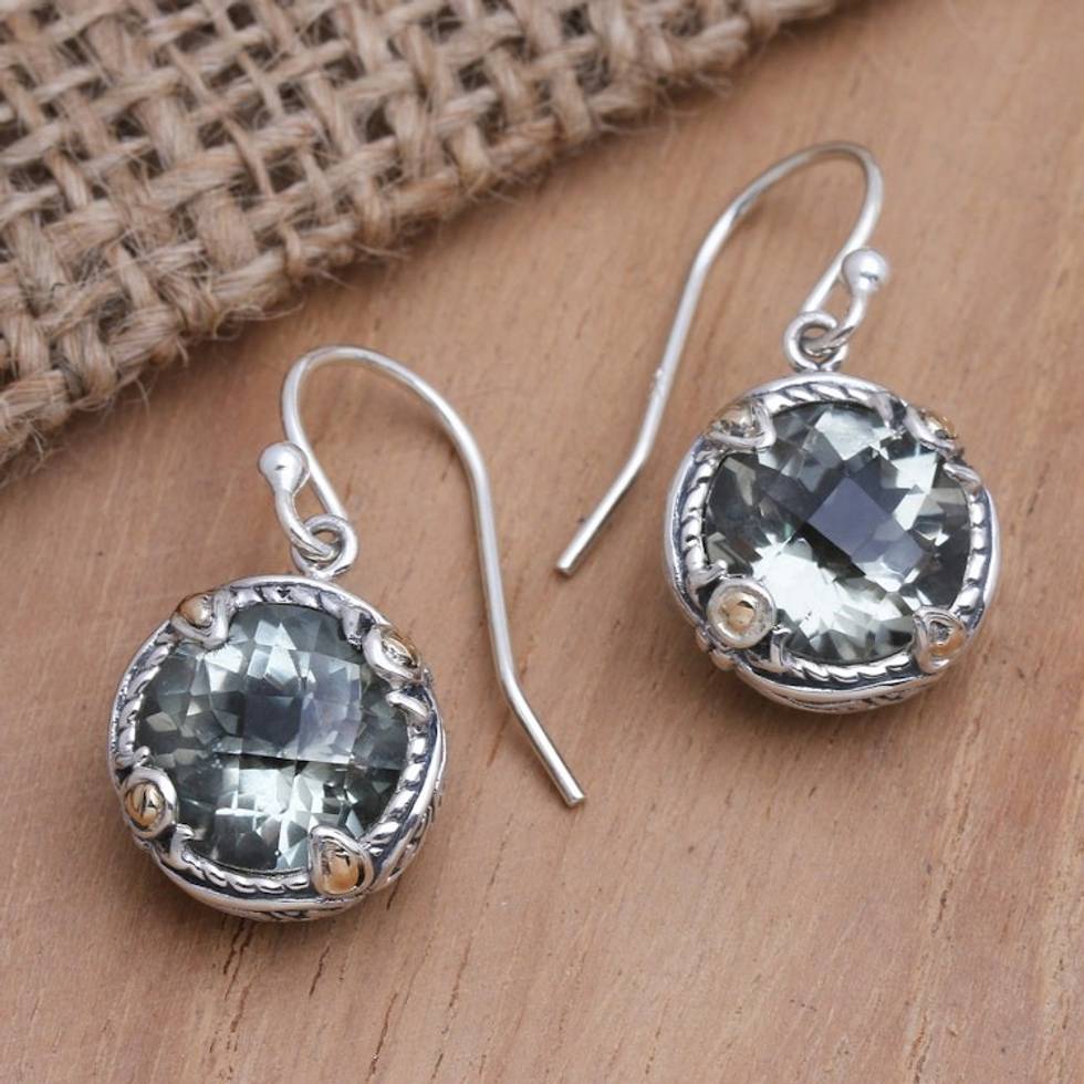 Gold-Accented Prasiolite Dangle Earrings 'Green Dream' Item ID: 2671747591