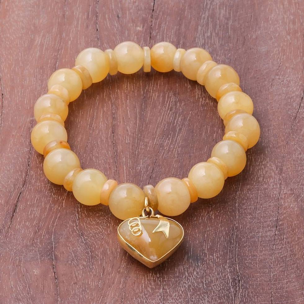 Gold Accented Quartz Beaded Heart Bracelet in Yellow 'Purest Heart in Yellow' Item ID: 2669930273