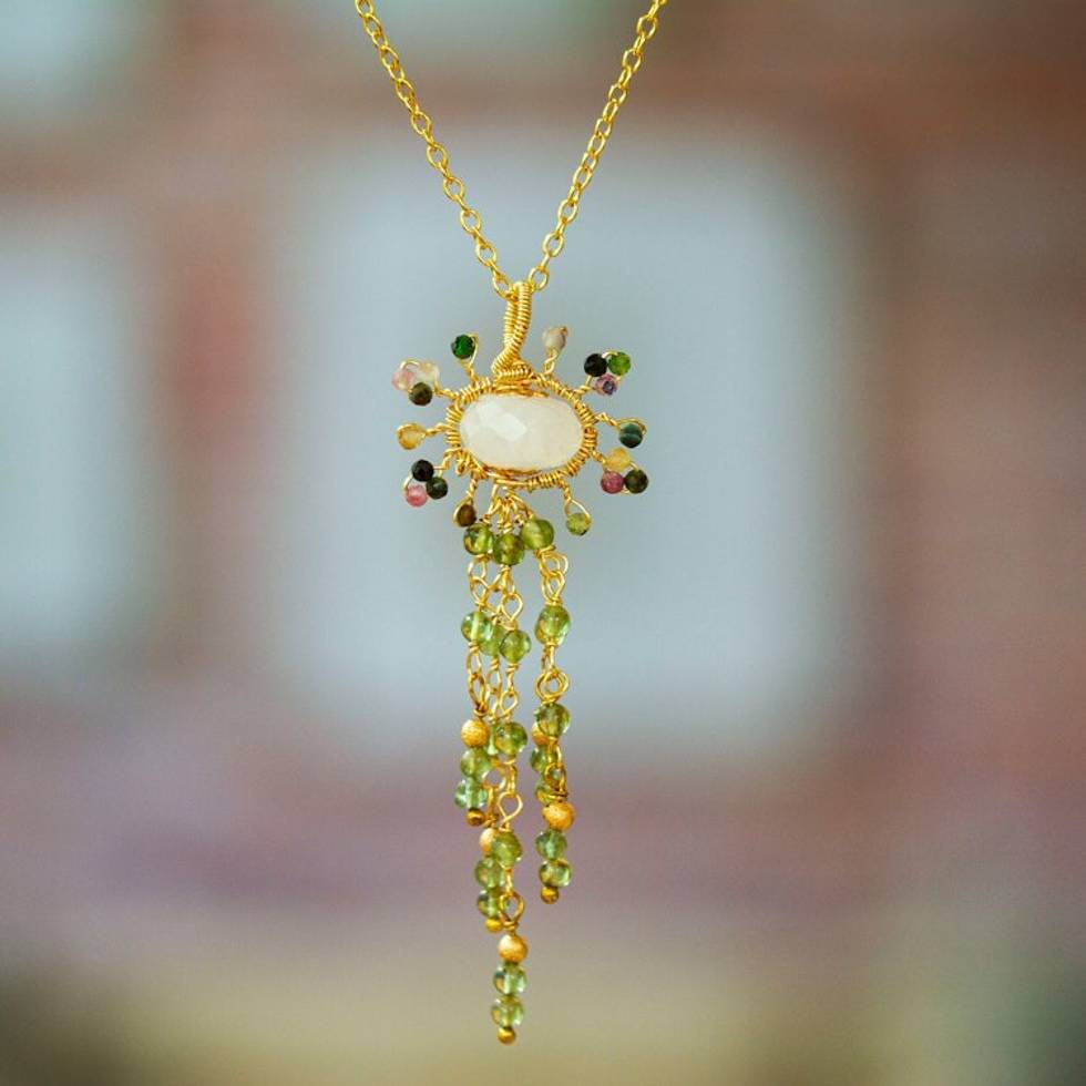Gold-Accented Quartz Tourmaline and Peridot Pendant Necklace 'Absolute Harmony' Item ID: 2669931644