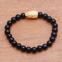 Gold Accented Snake-Themed Onyx Beaded Stretch Bracelet 'Fierce Snake' Item ID: 2671737084