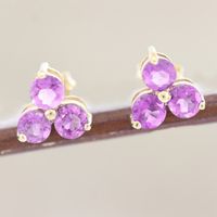 Gold-Accented Sterling Silver Amethyst Stud Earrings 'Regal Trio' Item ID: 2671787432