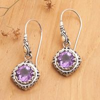 Gold-Accented Sterling Silver and Amethyst Dangle Earrings 'Trendy Purple' Item ID: 2671764540