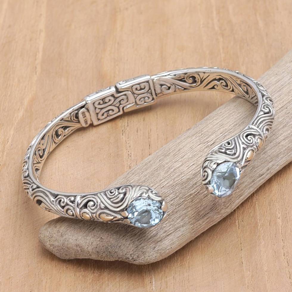 Gold-Accented Sterling Silver and Blue Topaz Cuff Bracelet 'Twin Charm' Item ID: 2671763283