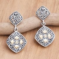 Gold-Accented Sterling Silver Dangle Earrings 'Daytime Flower' Item ID: 2671746979