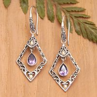 Gold-Accented Sterling Silver Dangle Earrings with Amethysts 'Shadow Mirror' Item ID: 2671764551