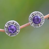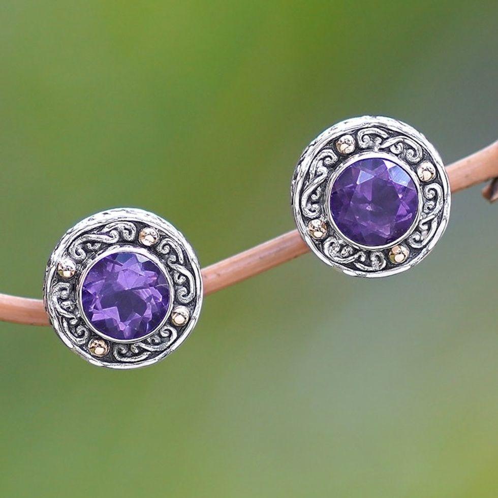 Gold-Accented Sterling Silver Earrings with Amethysts 'Deep Purple Glow' Item ID: 2671702033