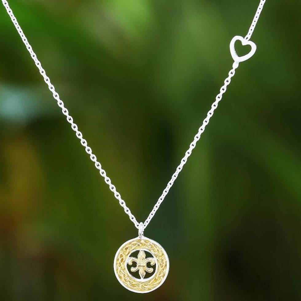 Gold Accented Sterling Silver Fleur-De-Lis Necklace 'Lovely Fleur-De-Lis' Item ID: 2676653406