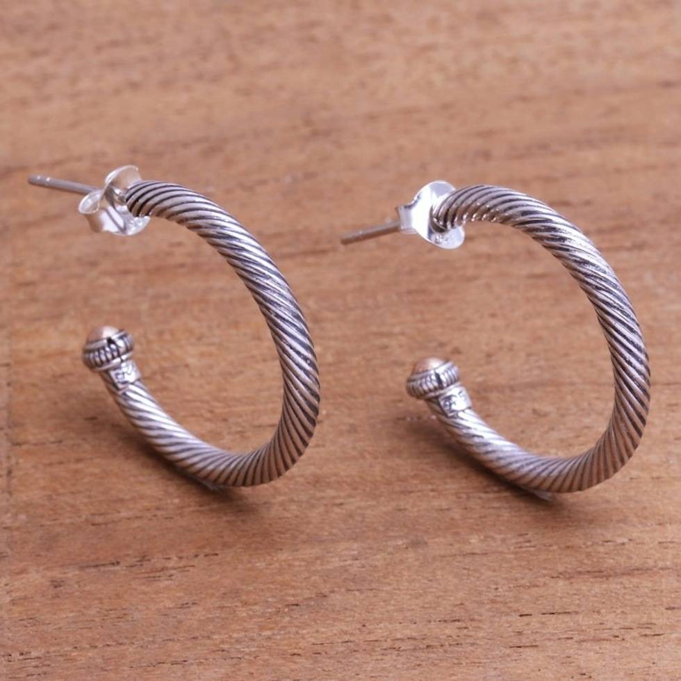 Gold-Accented Sterling Silver Half-Hoop Earrings from Bali 'Looping Rope' Item ID: 2671736663