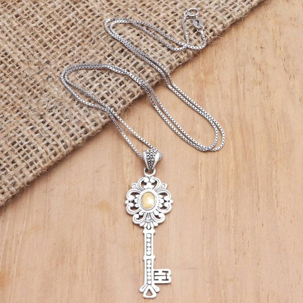 Gold-Accented Sterling Silver Key-Motif Pendant Necklace 'Unlock' Item ID: 2671671126