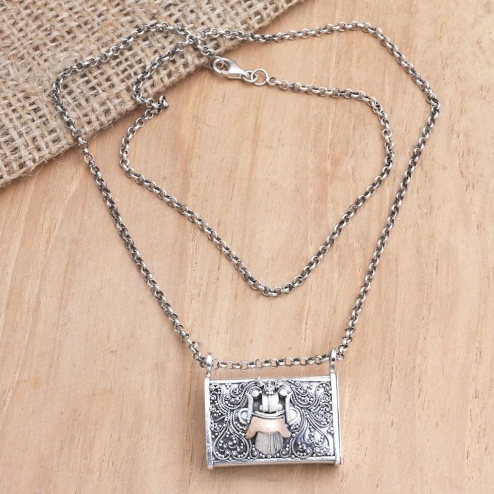 Gold-Accented Sterling Silver Pendant Necklace 'Eastern Myth' Item ID: 2671746774