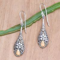 Gold Accented Sterling Silver Raindrop Earrings with Flowers 'Floral Raindrop' Item ID: 2669922764