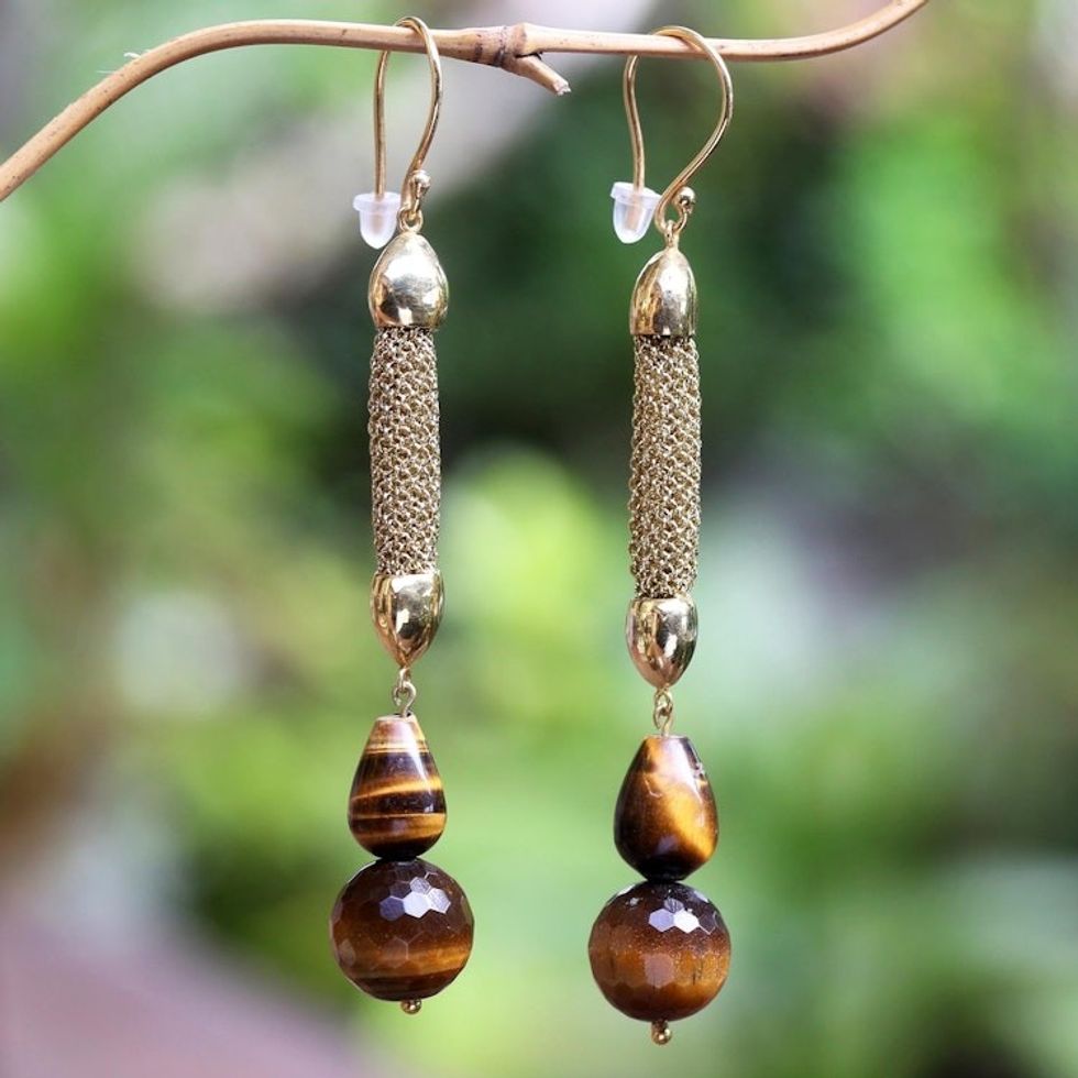 Gold-Accented Tiger's Eye Dangle Earrings 'Golden Tiger' Item ID: 2671745424