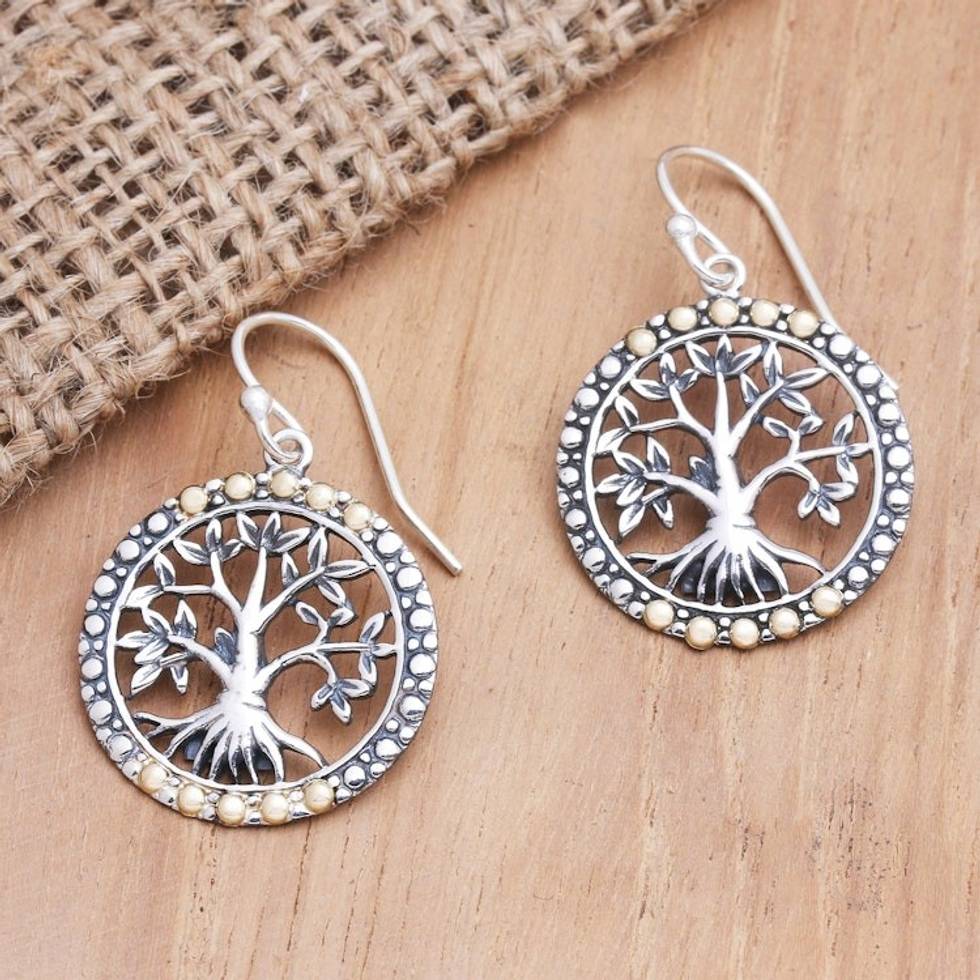 Gold-Accented Tree-Motif Dangle Earrings 'Venerable Banyan Tree' Item ID: 2671746617