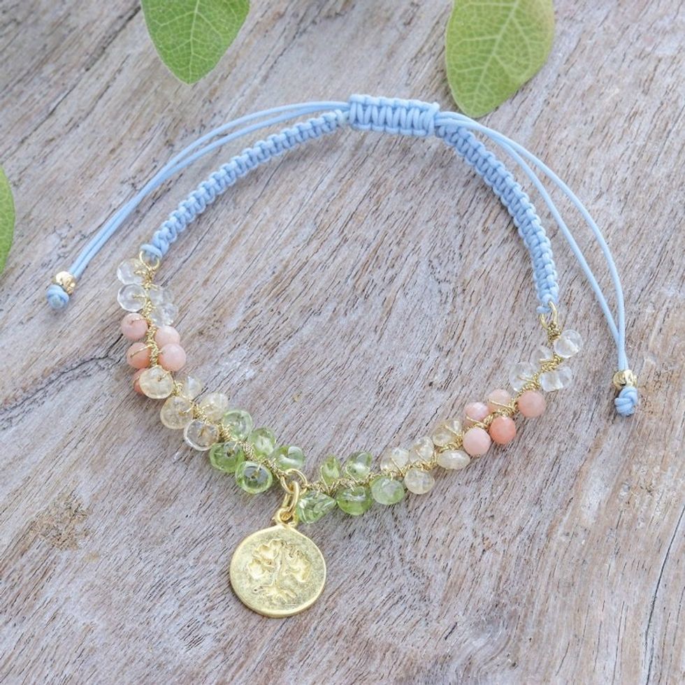 Gold-Accented Tree of Life Multi-Gemstone Macrame Bracelet 'Eternal Tree' Item ID: 2671796525