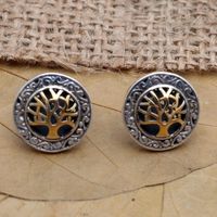 Gold-Accented Tree-Themed Button Earrings 'Golden Banyan Tree' Item ID: 2671746559