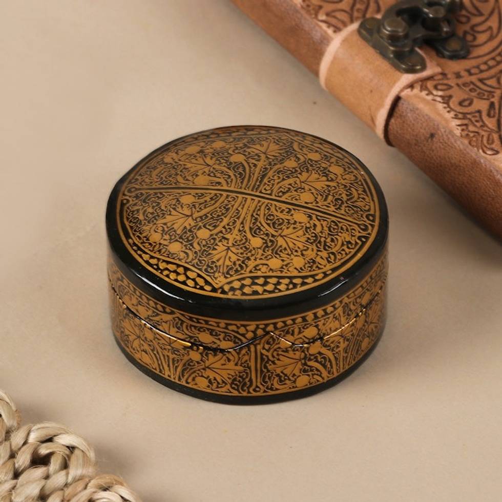 Gold and Black Papier Mache Decorative Box from India 'Alluring Grandeur' Item ID: 2671791258
