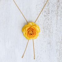 Gold and Genuine Yellow Rose Necklace from Thailand 'Garden Rose in Yellow' Item ID: 2671801091